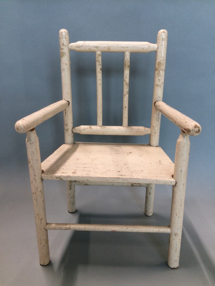 Wit geverfd houten poppestoeltje