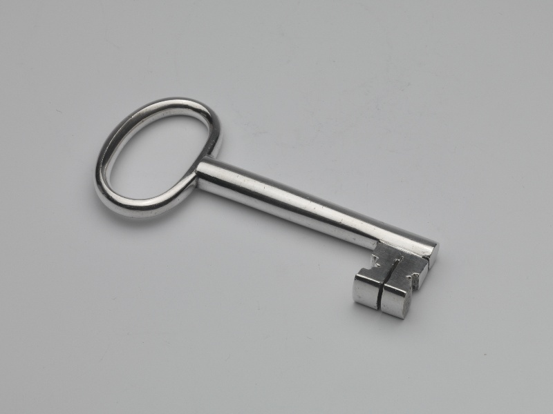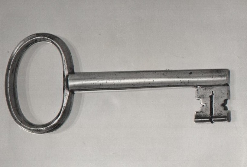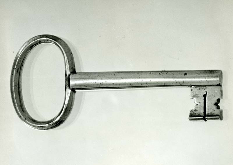 Metalen element waarmee een slot wordt geopend. Naar de vorm van de baard (het uitgesmede einde) worden sleutels met namen aangeduid, zoals kruissleutel. Een sleutel waarvan de doorsnede van de (zie) baard asymmetrisch is, wordt ook bonte sleutel genoemd. (Haslinghuis)