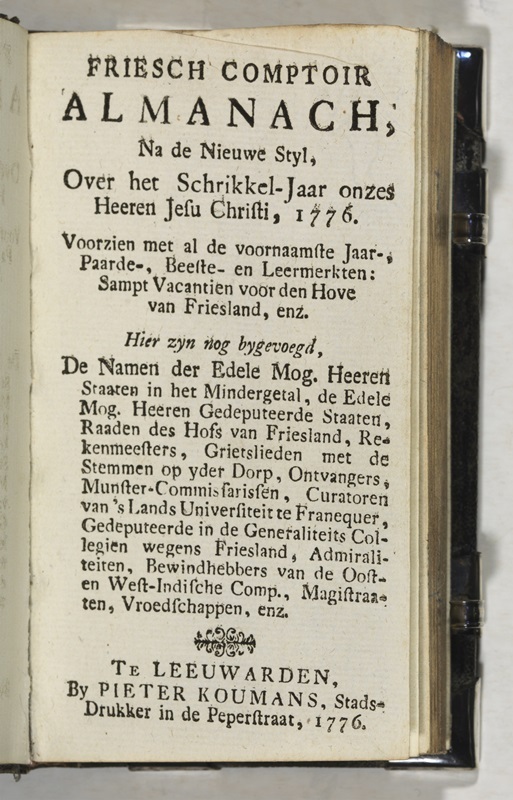 Almanak met zilveren boekbeslag en gekroond wapen van Friesland