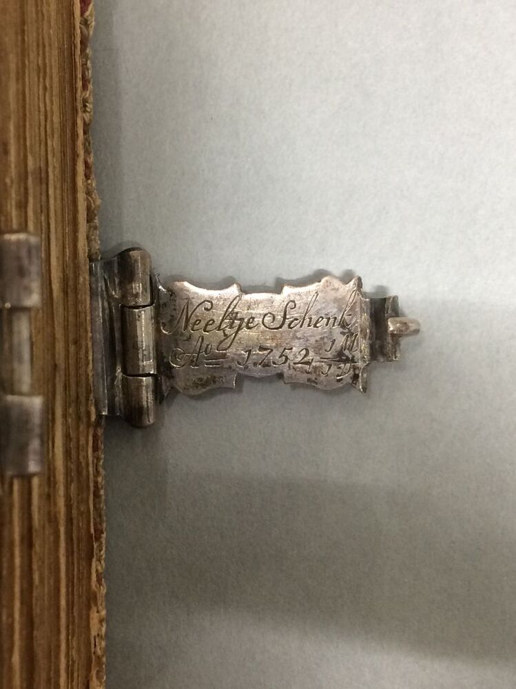 Het geheel van (edel)metalen, geornamenteerde bescherm- en/of versierstukken op kostbare boeken. De delen (kunnen) zijn: de hoeken, een centraal middendeel, klamphouders en klampen en een houder met ring middenboven voor een draag- of vergrendelingsketting.