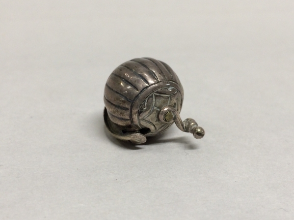 Meetlint bestaande uit een ronde bol met verticale gleuf waaruit groen lint getrokken kan worden