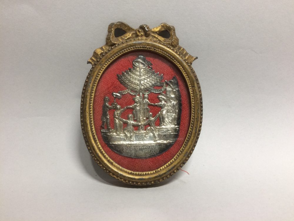 Medaillon met voorstelling in zilver van de vrijheidsboom