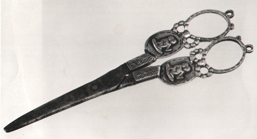 Ceremoniële schaar, mogelijk verguld en voorzien van religieuze voorstellingen. In vrouwenkloosters gebruikt bij de inkleding om een lok af te knippen, in mannenkloosters bij de kruinschering. (Religieus Erfgoedthesaurus) https://data.cultureelerfgoed.nl/term/id/cht/6d0a91a3-b717-4040-b93e-0a908f9d3c7b