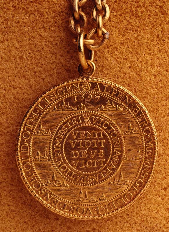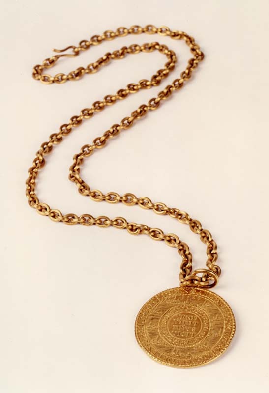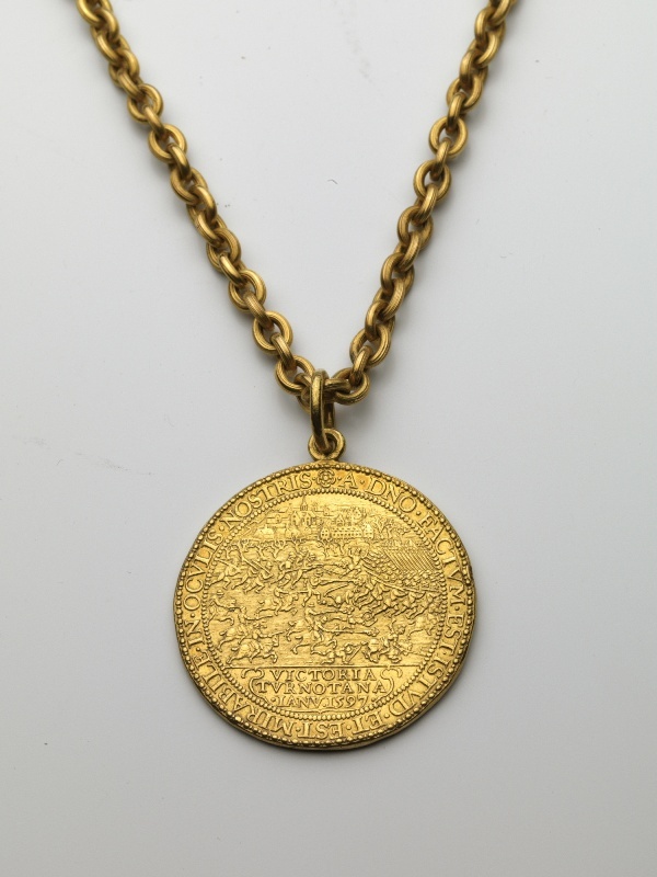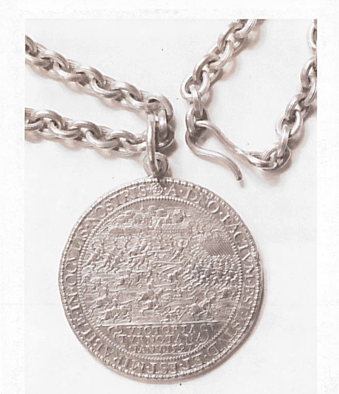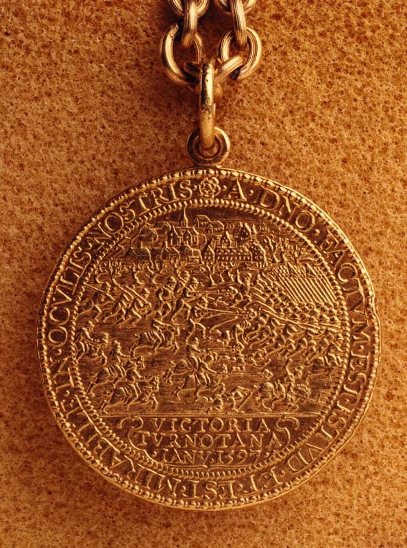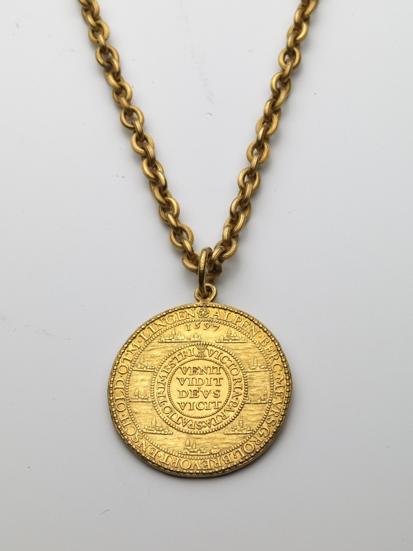 Gedenkpenning van de Slag bij Turnhout aan gouden ketting