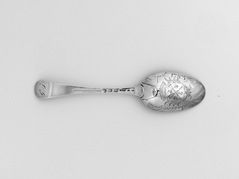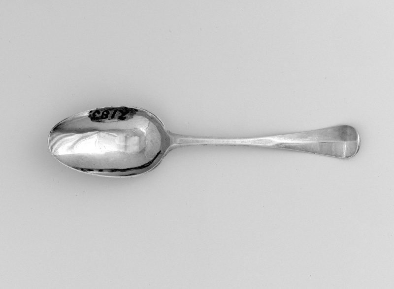 Gildelepel met achterop het blad eenwapen gegraveerd, gedekt door een kroon van negen parels en omgeven door twee van onder saamgebonden palmtakken