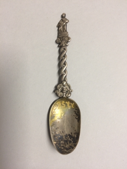 Theelepeltje met een afbeelding van een vrouw met een kind