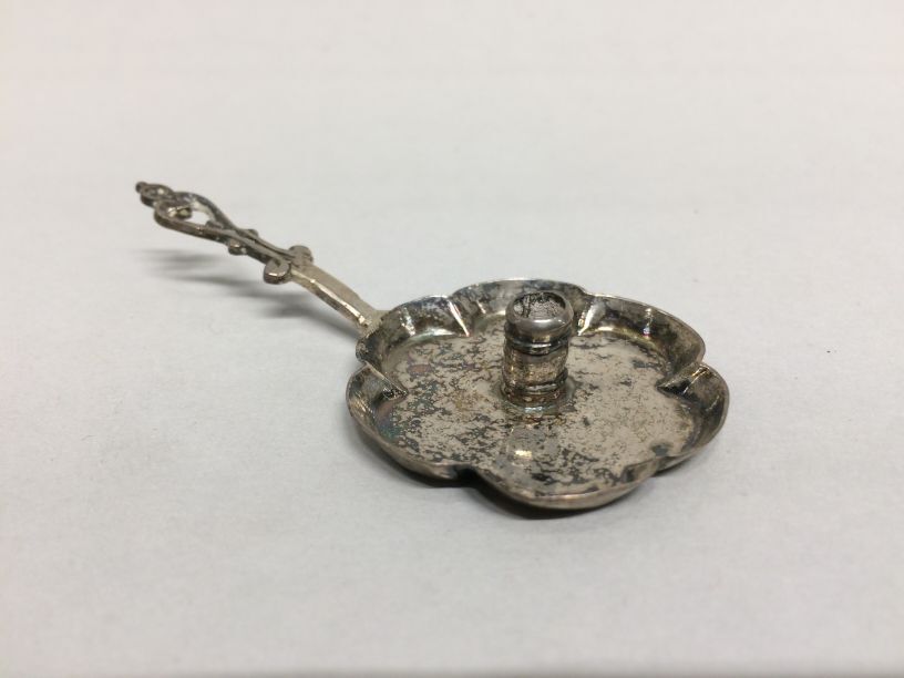 Lage kandelaar met een schotel- of schaalvormige voet die veelal is voorzien van een oortje als handvat. Werd ook kaarsepan genoemd. Soms (zonder oortje) bevestigd op kerkgestoelte. RT armluchter. https://data.cultureelerfgoed.nl/term/id/cht/68e8cc2b-9b95-4e08-acc2-b8e72e066e72