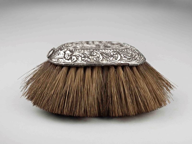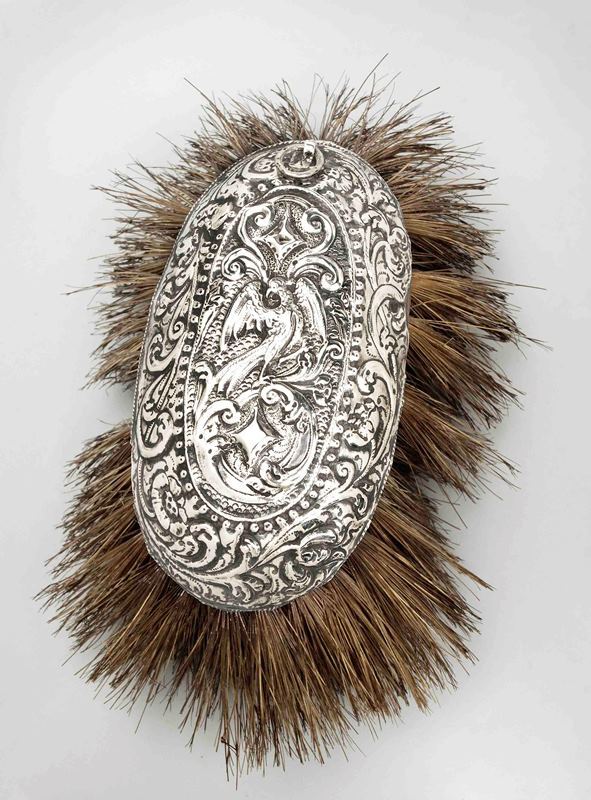 Houten borstelrug met haar en zilverbeslag