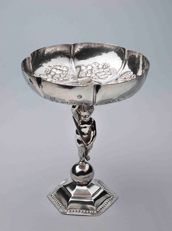 Drinkschaal of beker met middenin een gegoten zwaantje