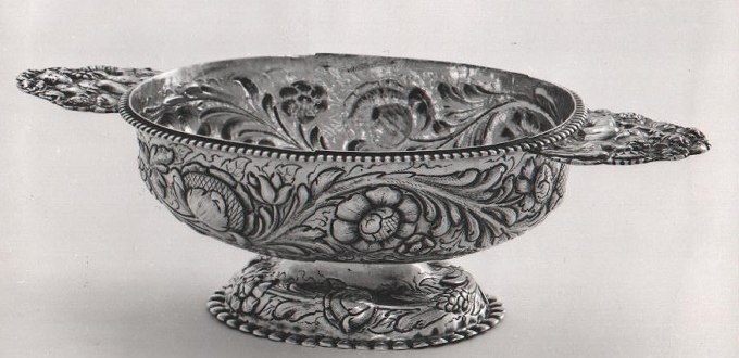Twee-orig, van oorsprong zeventiende-eeuws zilveren kommetje waaruit brandewijn werd gedronken, maar in kerken wel wordt/werd gebruikt als collecteschaaltje. https://data.cultureelerfgoed.nl/term/id/cht/5d4501c2-bed0-47b0-8c7b-c8973d91084c