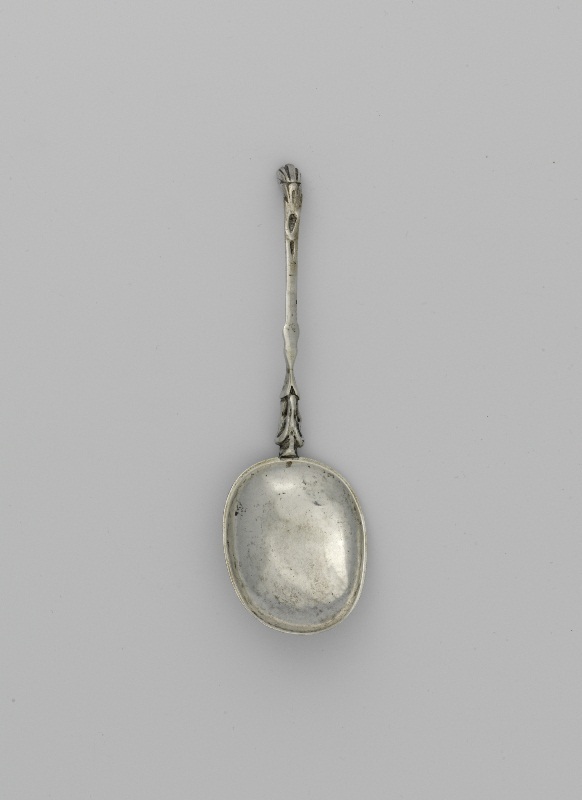 Lepel waarvan steel bovenaan omkrult in vorm van bloemknop