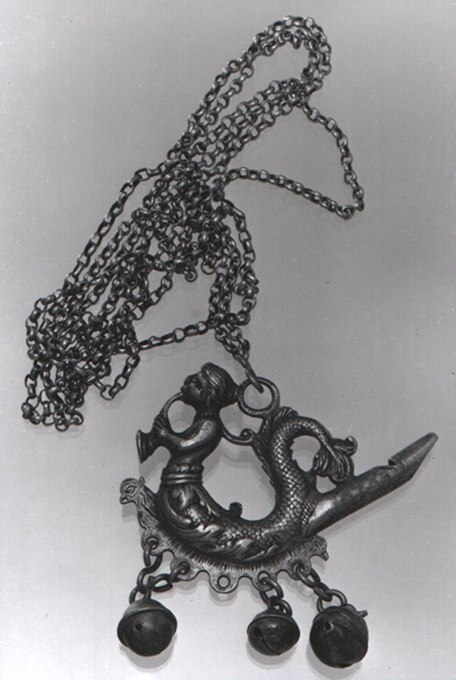 Rinkelbel in vorm van zeemeermin met fluit met drie bellen