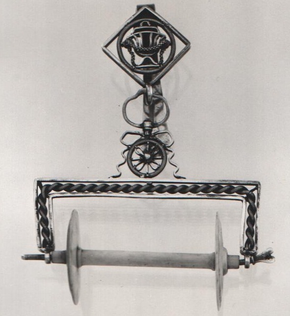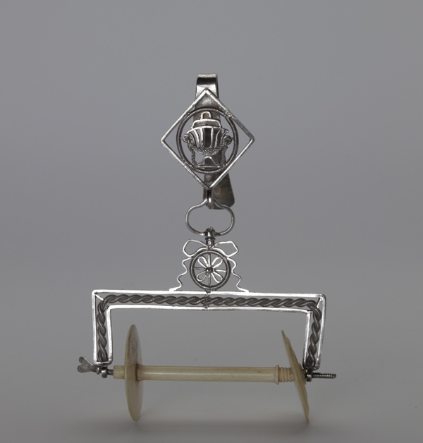 Garenwinder met benen klos en bovenop beugel ajour bloem