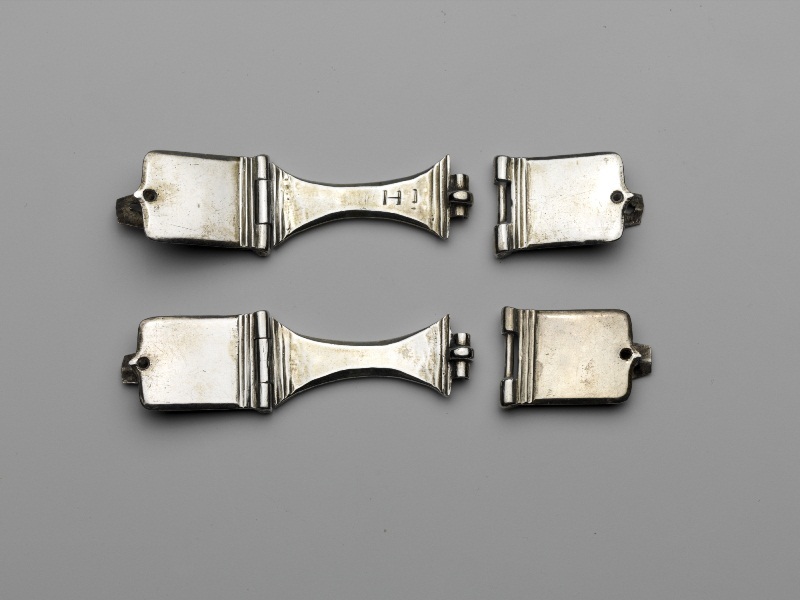 Twee boekklampen met zijstukken in vorm van wapenschild