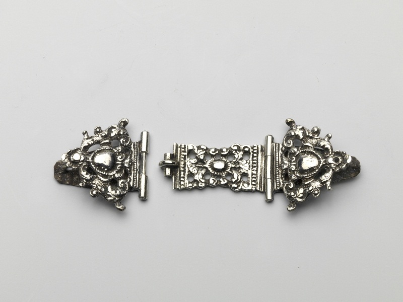 Het geheel van (edel)metalen, geornamenteerde bescherm- en/of versierstukken op kostbare boeken. De delen (kunnen) zijn: de hoeken, een centraal middendeel, klamphouders en klampen en een houder met ring middenboven voor een draag- of vergrendelingsketting.
