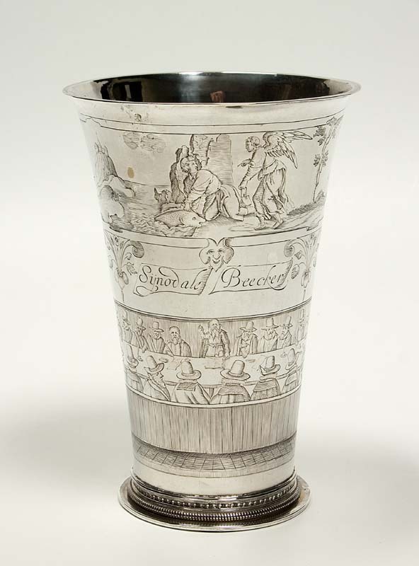 Kleine wijnbeker die wordt uitgedeeld aan iedere deelnemer aan het heilig avondmaal. De wijn wordt in het bekertje geschonken met de avondmaalskan. https://data.cultureelerfgoed.nl/term/id/cht/cd64ed8c-26c3-4312-b203-f2f5d81a6220