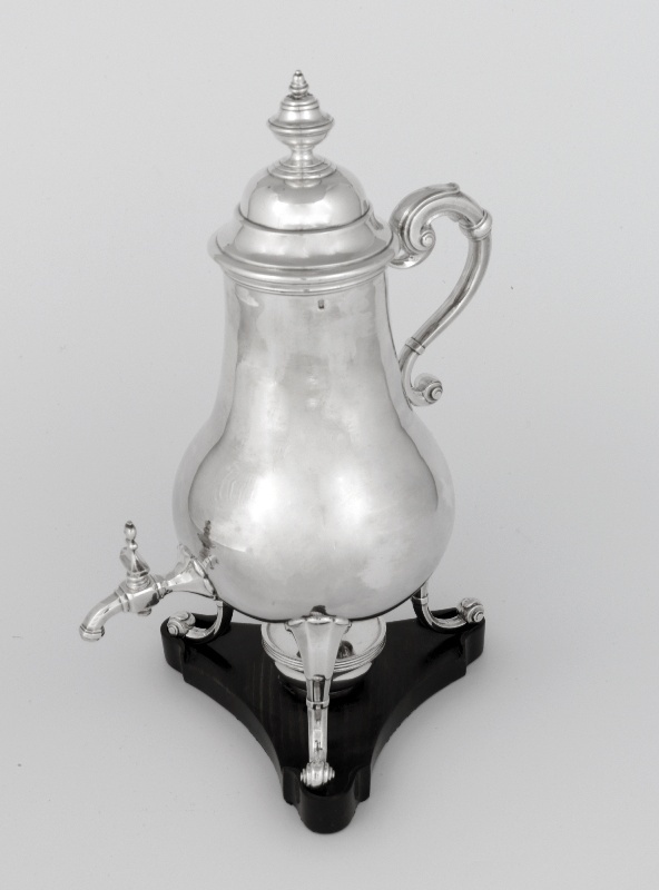 Aan het einde van de 17de eeuw ontwikkelde zich naast de koffiekan met tuit een nieuw type kan met een op de buik gemonteerd kraantje, de kraantjeskan. In dit praktische model kon koffie worden gezet en vervolgens direct in kopjes worden getapt. Behalve in zilver, messing, tin en gelakt blik werden kraantjeskannen ook wel uitgevoerd in ceramiek. (Rijksmuseum Amsterdam)