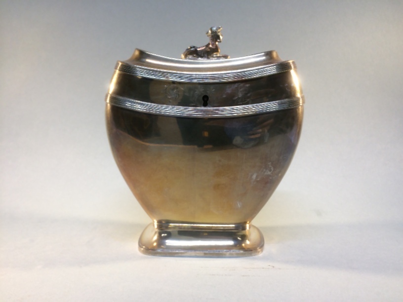 Theebus met sleutel, de knop bestaat uit een liggende sphinx