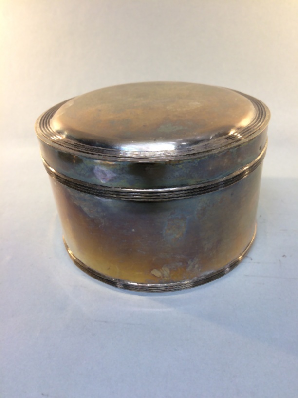 Koekjestrommel met onderlangs de bodem en de sluitring en bovenlangs het deksel een filet