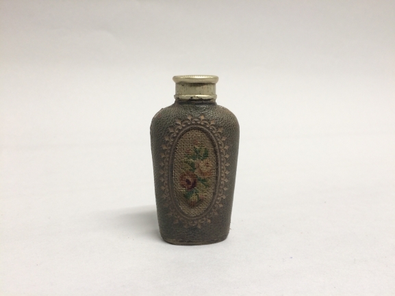 Wasluciferdoos bekleed met leer en rozen in borduurwerk