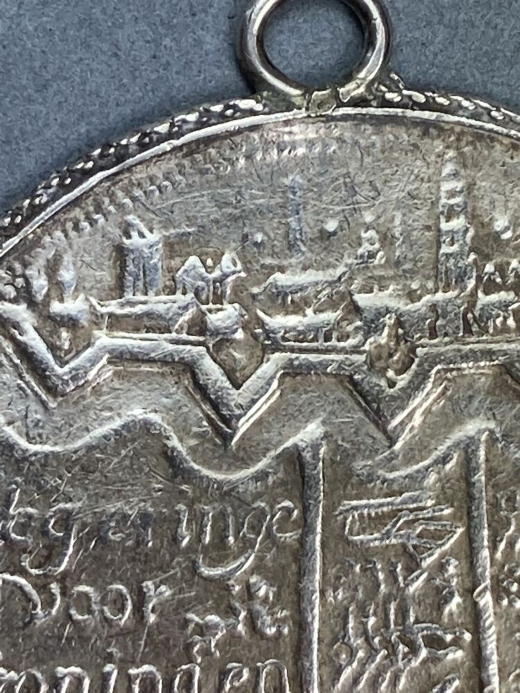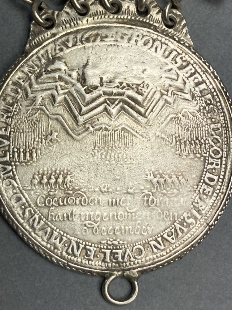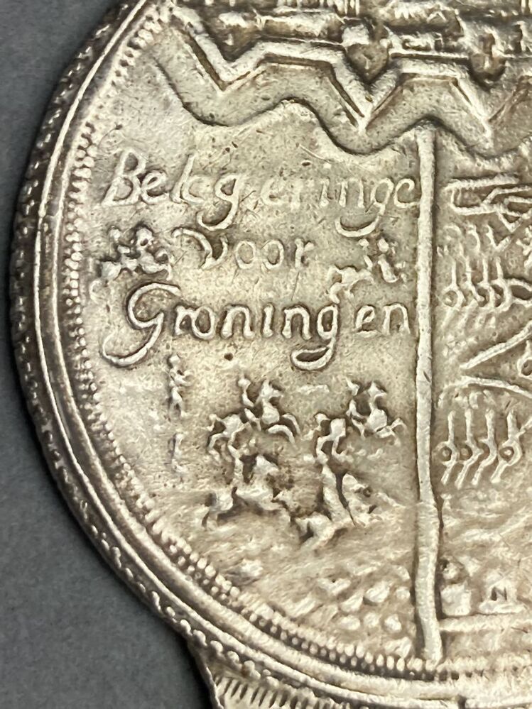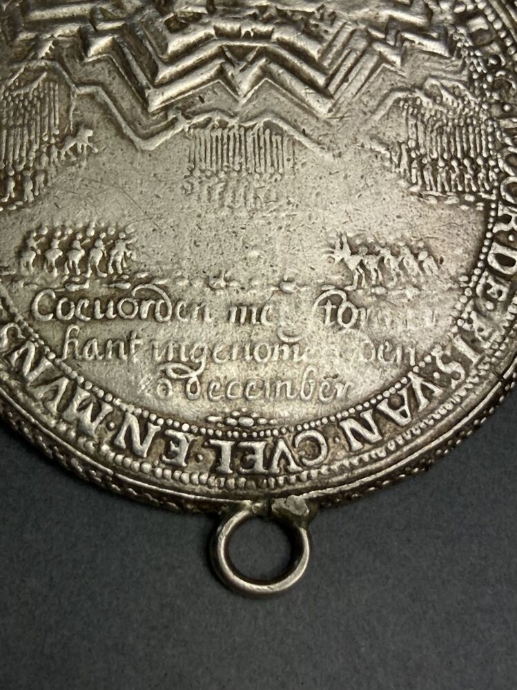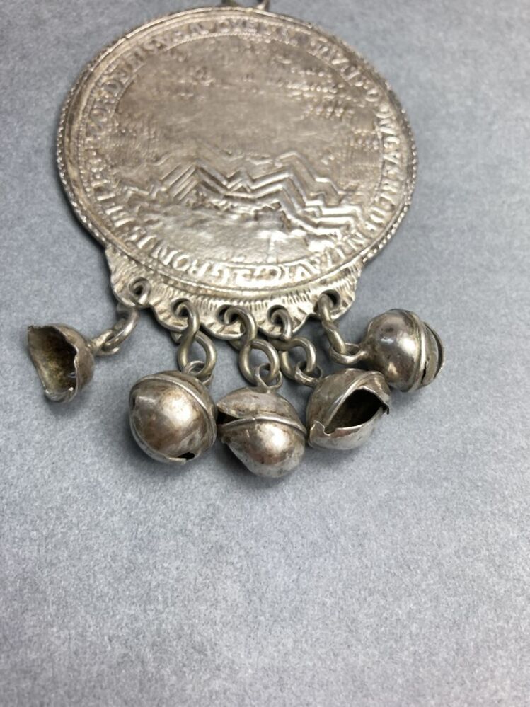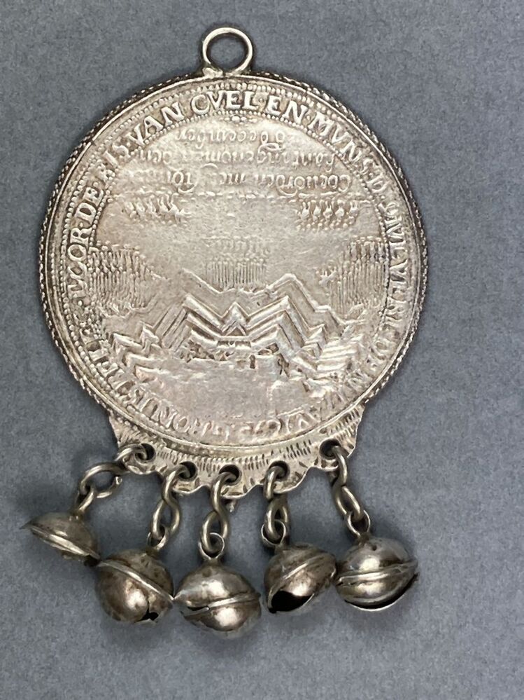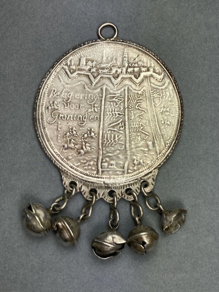 Rinkelbel met historiepenning met belegering van stad Groningen
