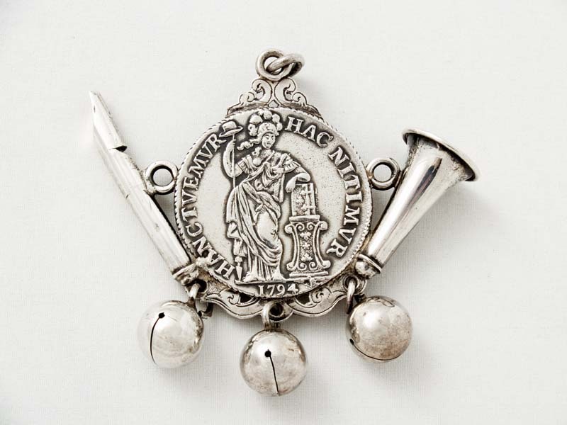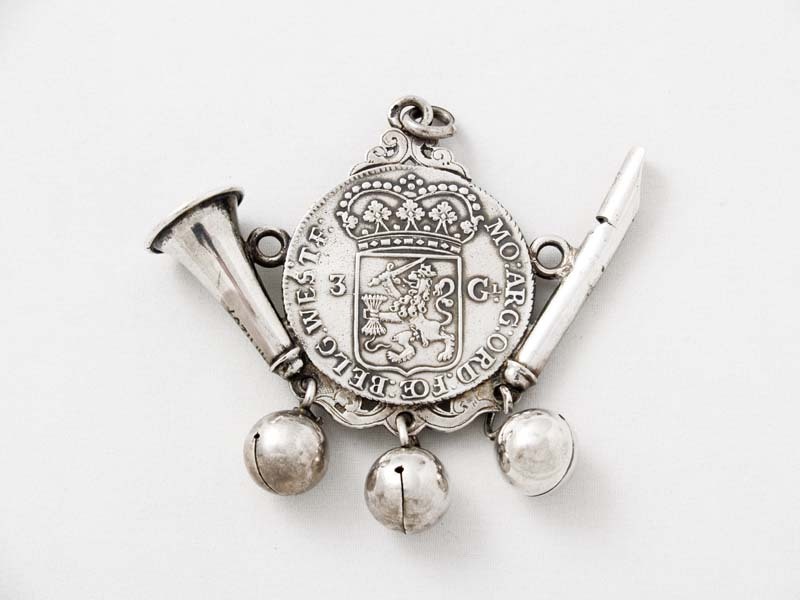 Rinkelbel gemaakt van drie guldenmunt 1794 van West- Friesland