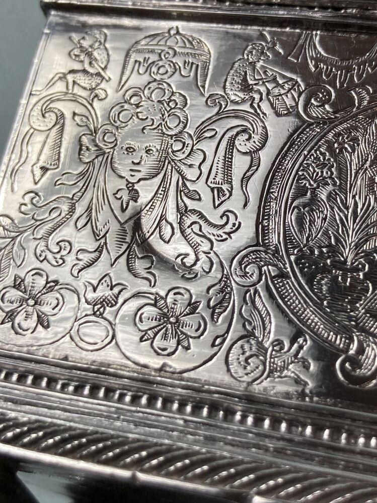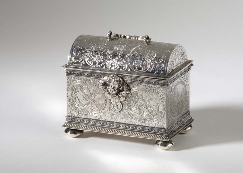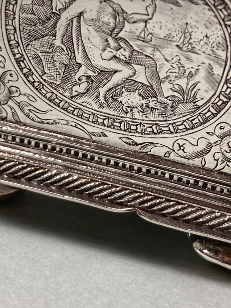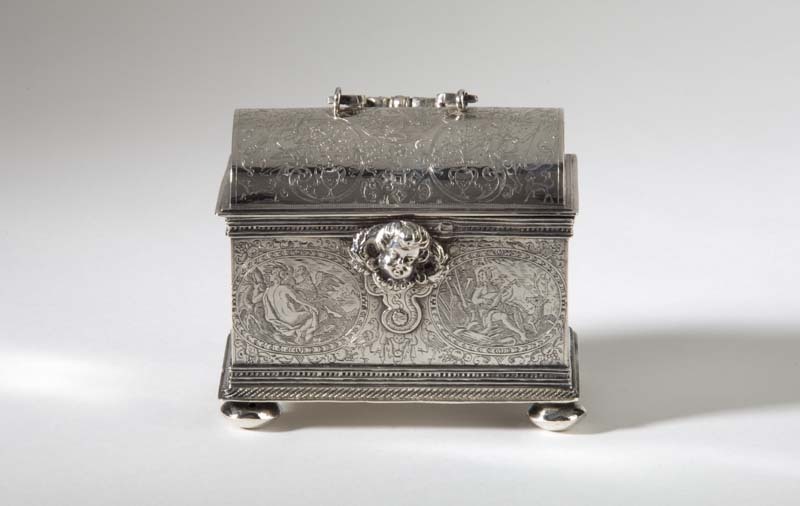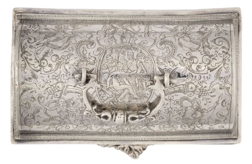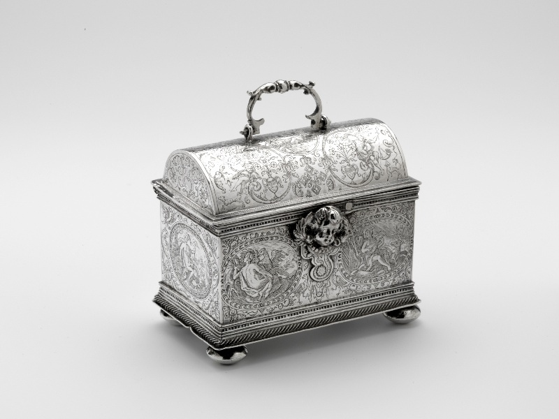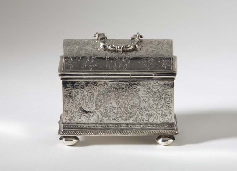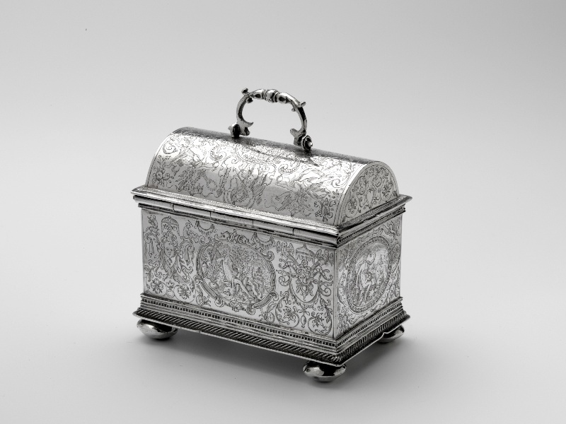 Knottekistje met gravering van de vijf zintuigen en Suzanna met de ouderlingen