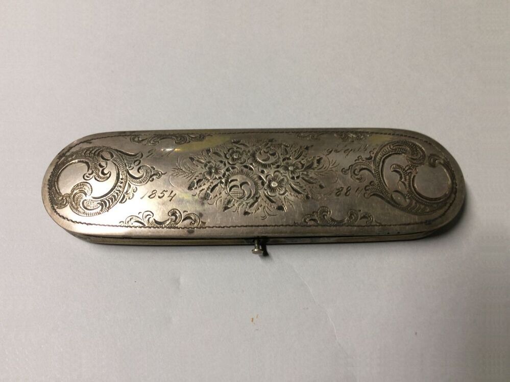 Brillendoos met op deksel tussen bloemen gegraveerd W.A. 19 Septb / 1854-1884