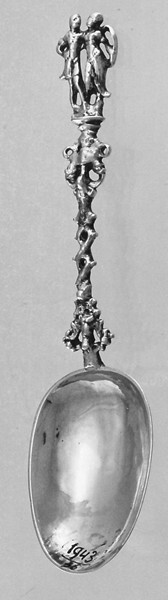 Geboortelepel van Sijbren Hijlkes Wiarda met bekroning van David en Jonathan