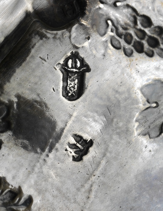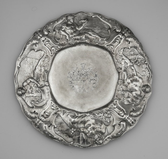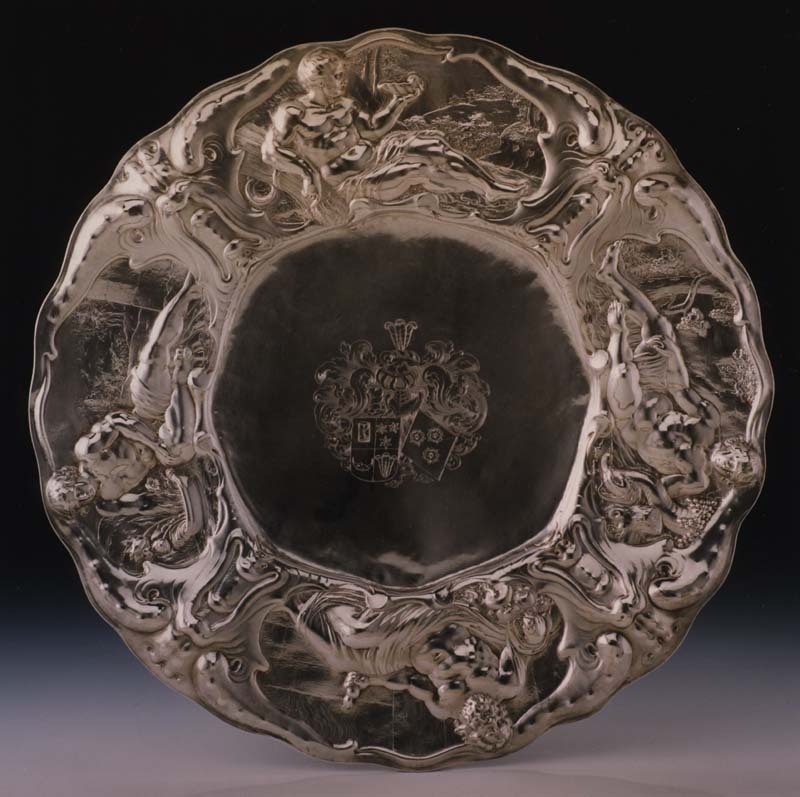 Fruitschaal met de vier seizoenen en het alliantiewapen Sminia en Eysinga