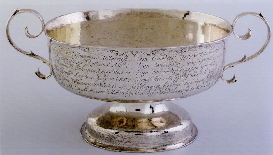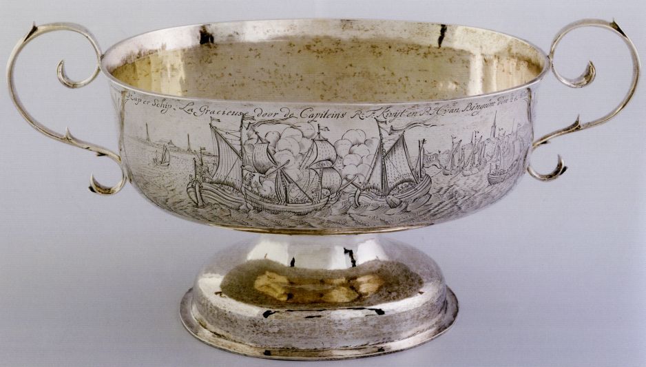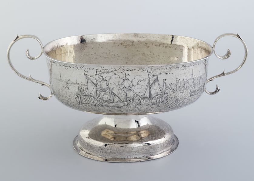 Brandewijnkom, met afbeelding van een gevecht met kapers