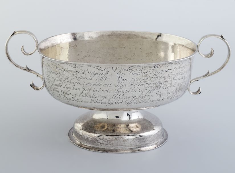 Twee-orig, van oorsprong zeventiende-eeuws zilveren kommetje waaruit brandewijn werd gedronken, maar in kerken wel wordt/werd gebruikt als collecteschaaltje. https://data.cultureelerfgoed.nl/term/id/cht/5d4501c2-bed0-47b0-8c7b-c8973d91084c