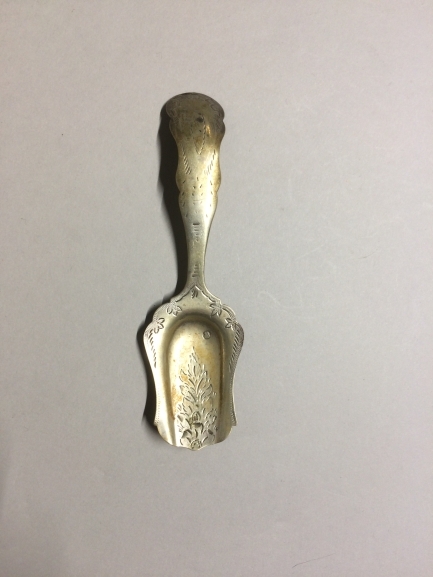Suikerschepje met op het blad een halve bloem met enkele bladeren