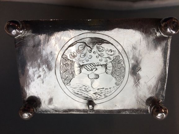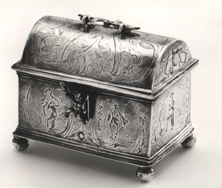 Knottekistje met op de bodem twee inelkaargrijpende handen met een brandend hart