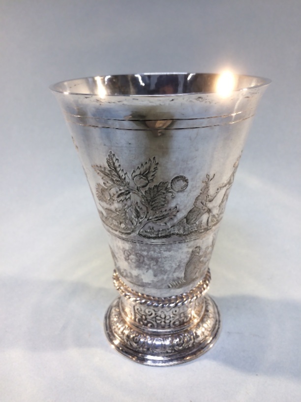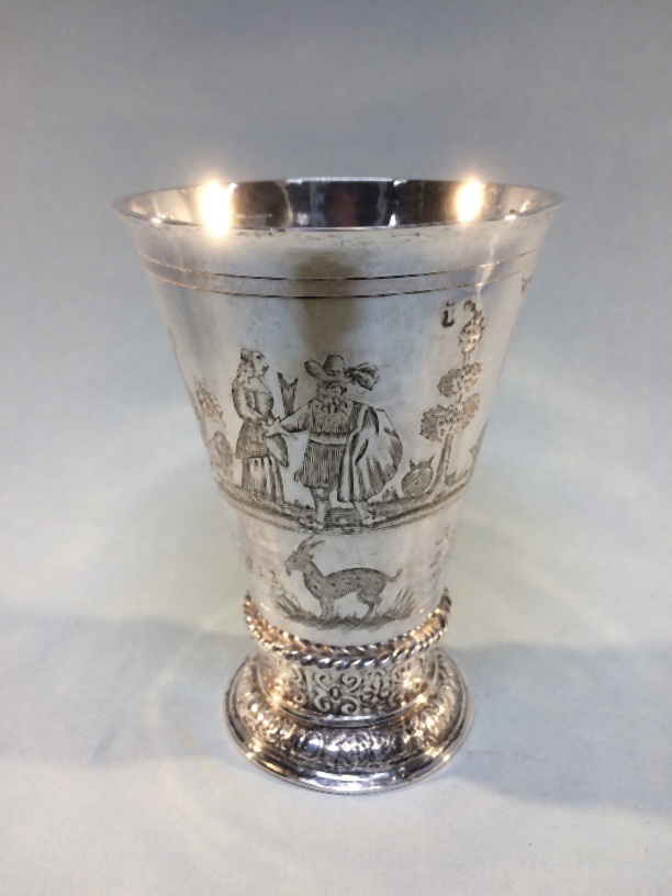 Groninger beker versierd met mensen en dieren die ondeugden symboliseren