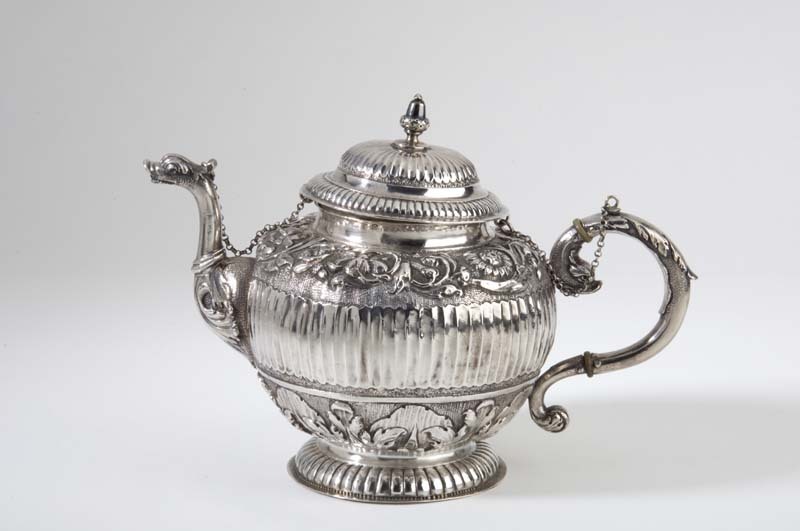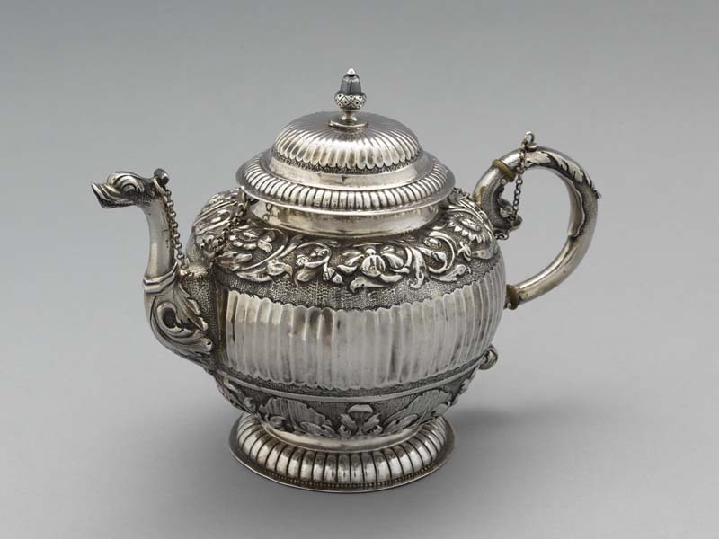 Afgedekte potten voor het laten trekken en serveren van thee, met tuit en handvat en soms met voetjes. Te onderscheiden van 'theeketels' die een hengsel als handvat en een brede, platte onderkant hebben en worden gebruikt om water in te verwarmen waar thee van wordt gezet. (AAT-Ned)