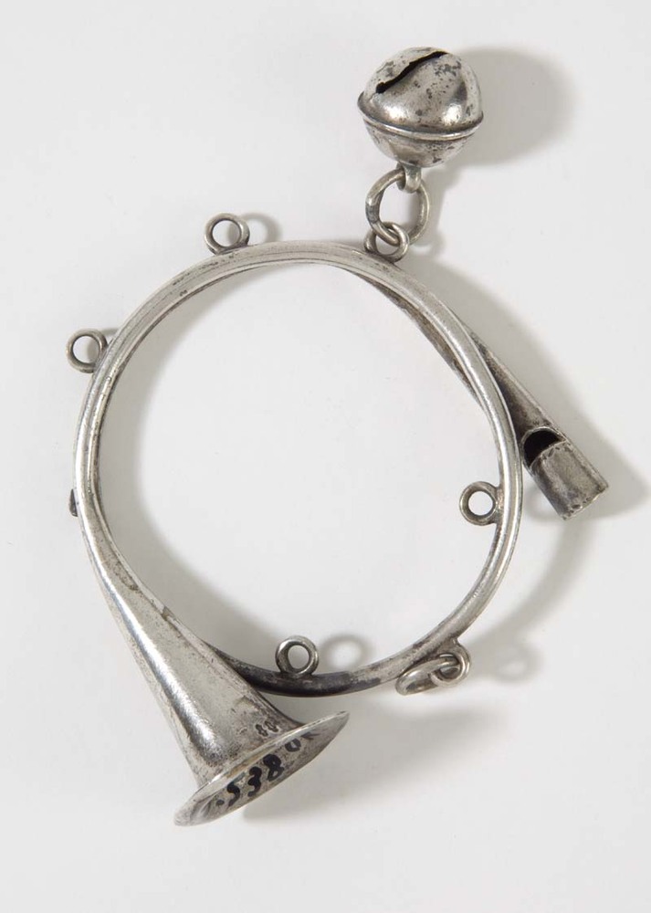 Rinkelbel met fluitje in de vorm van een posthoorn