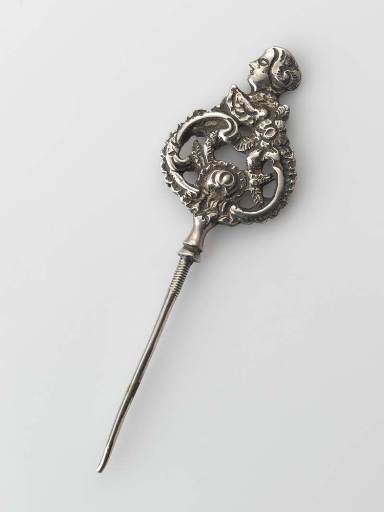 Priem met ovaal liggend medaillon bestaand uit twee C-vormige rocailles en rozen
