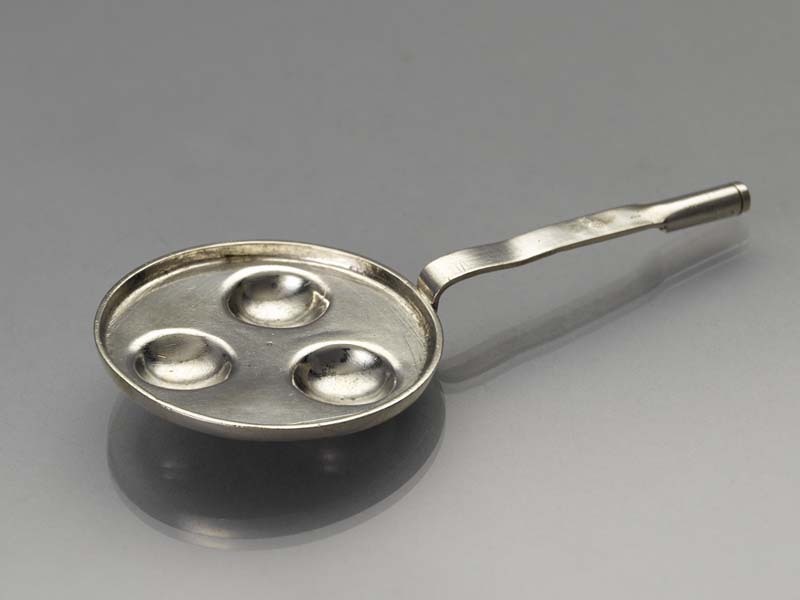 Een poffertjespan is een speciale pan om poffertjes in te bakken. De pan is doorgaans rond van vorm, en is op een aantal plaatsen uitgehold. In deze uithollingen wordt het poffertjesbeslag gegoten of gespoten met een beslagspuit. De poffertjespan wordt traditioneel gemaakt van gietijzer, maar tegenwoordig zijn er ook goede gietaluminium pannen. Voor commerciële uitbaters bestaan er speciale bakplaten waarop grote hoeveelheden poffertjes tegelijk gebakken kunnen worden. (Wikipedia) https://data.cultureelerfgoed.nl/term/id/cht/f31decfb-b89b-46c9-9b3c-676bbf8d58c3