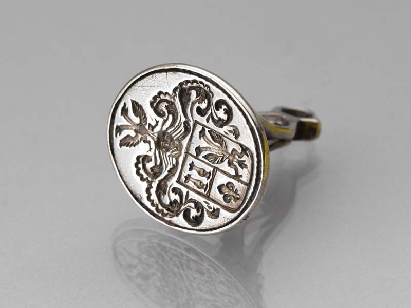 Cachet met wapen gedekt door helm met als helmteken dubbele adelaar