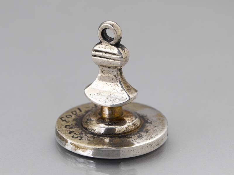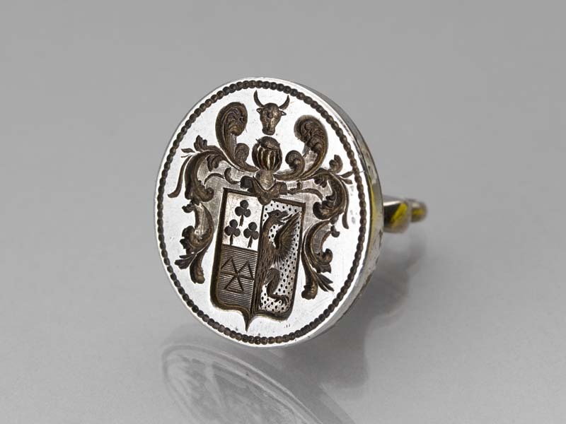 Cachet met wapen gedekt door helm met als helmteken een koeienkop