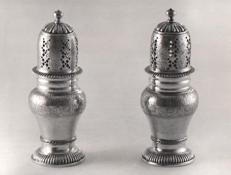 Strooiers die met name bedoeld zijn voor het serveren van suiker op tafel, meestal cylinder- of balustervormig met een geperforeerd, bol deksel dat soms op de strooier zelf moet worden geschroefd. (AAT-Ned) https://data.cultureelerfgoed.nl/term/id/cht/c2343b03-5121-4848-8193-b51f18cd185c