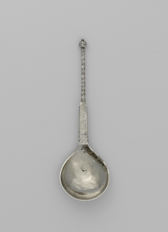 Lepel met als bekroning pijnappel met knopje bovenop