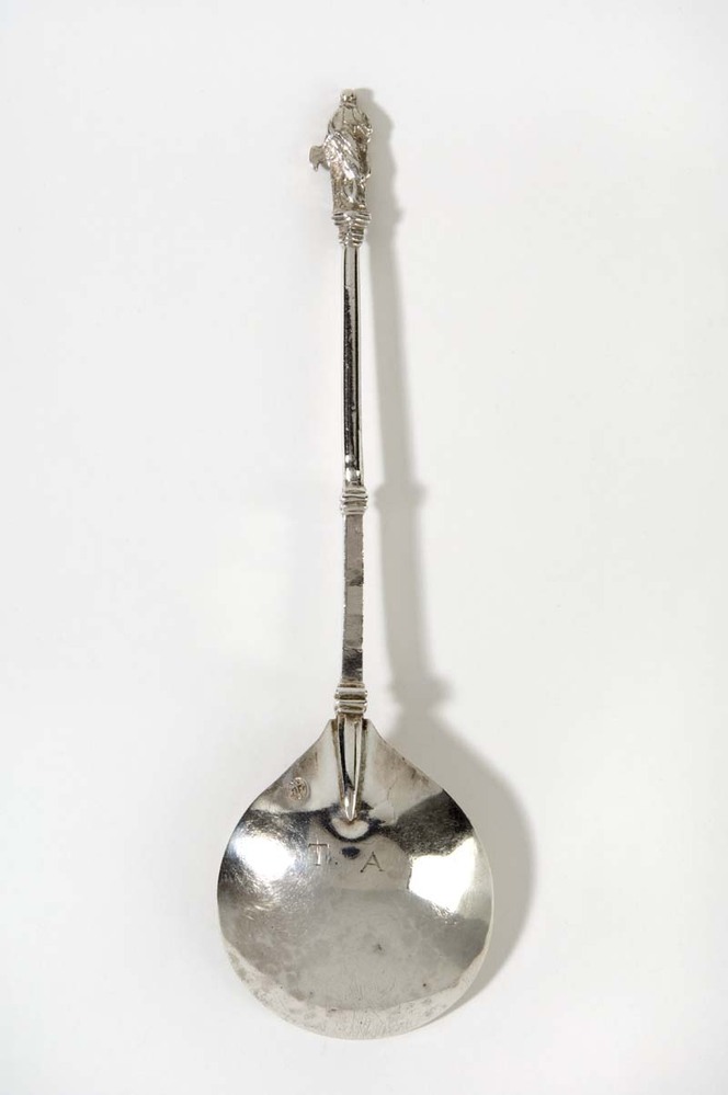Apostellepel met als bekroning staande man, met linkerarm leunend op bijl, Apostel Matthias voorstellend