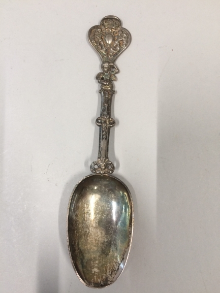 Lepel met als bekroning kroon boven een ovaalvormig glad schild, dat wordt vastgehouden door 2 putti