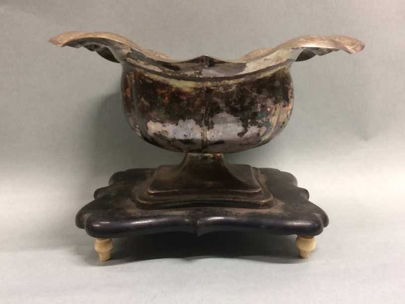 Aansteekkomfoor gemonteerd op een zwartgelakt plankje met accoladevormige zijkanten