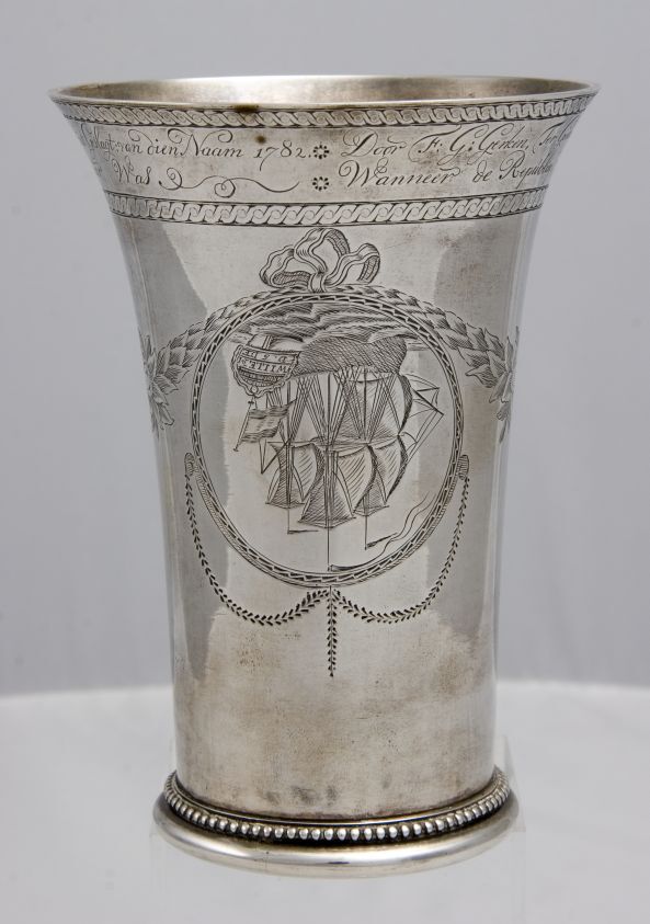 Beker met twee voorstellingen van schepen