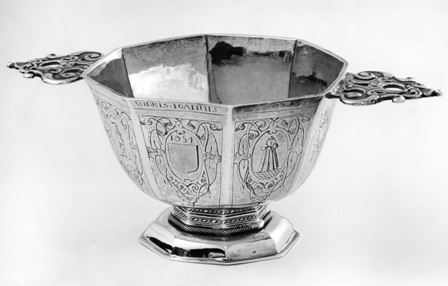 Twee-orig, van oorsprong zeventiende-eeuws zilveren kommetje waaruit brandewijn werd gedronken, maar in kerken wel wordt/werd gebruikt als collecteschaaltje. https://data.cultureelerfgoed.nl/term/id/cht/5d4501c2-bed0-47b0-8c7b-c8973d91084c