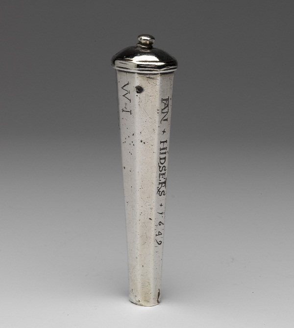 Mesheft met achtkantig taps toelopend heft op vijf der kanten gravure: IAN X HIDSERS X 1649 ;W=I; I*W; W+S; WIETSE*JANS 1826