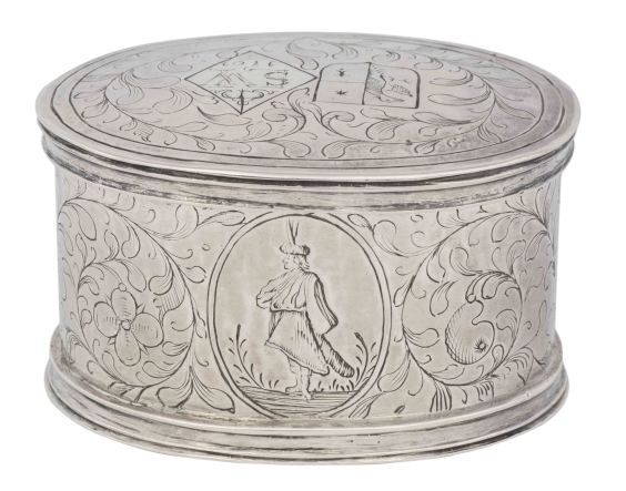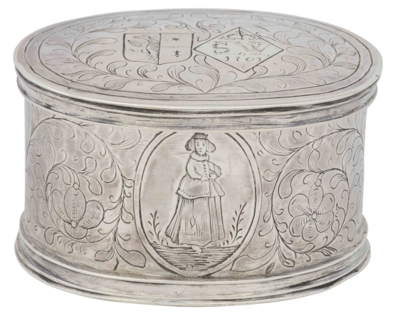 Knottedoosje met op het deksel een mannen- en vrouwenwapen